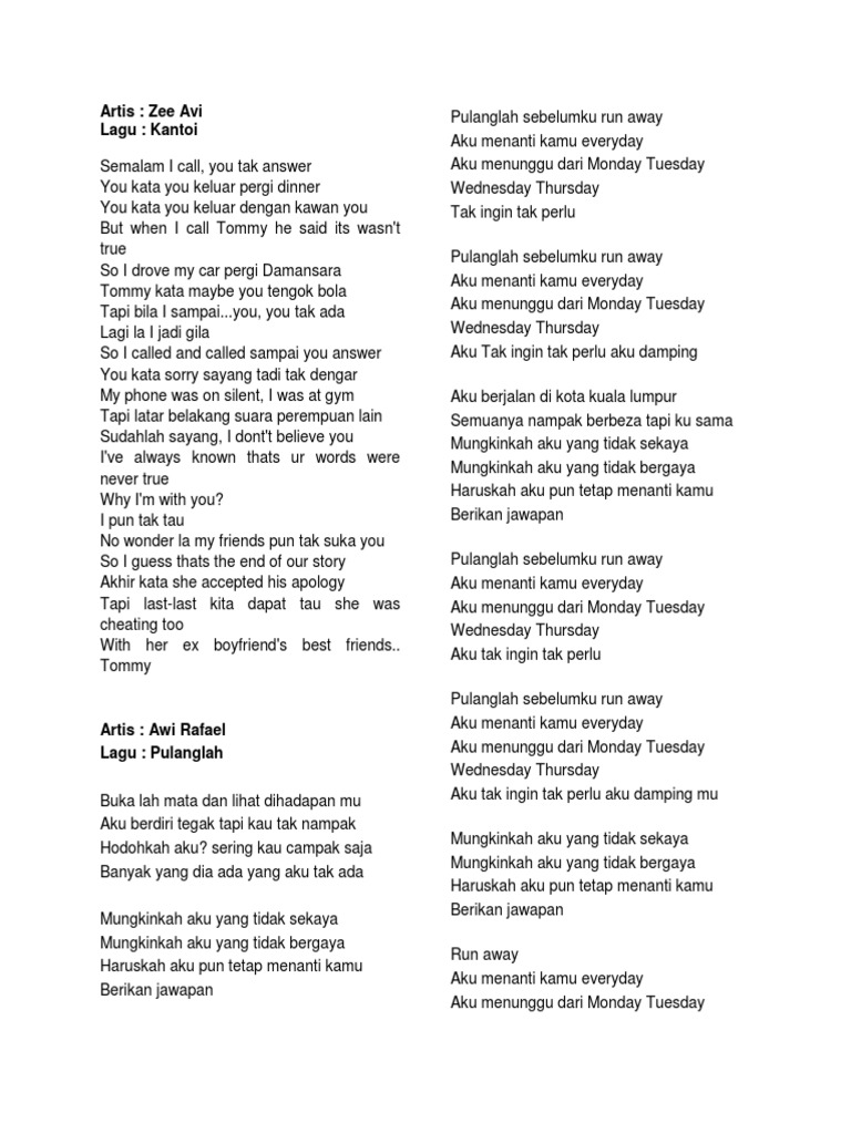 Saturday June 29 2019 Jika ada sebarang masalah tentang chord lagu diatas sila buat aduan pada Form Report Chord yang disediakan. Hasil penelitian yaitu pengubahan bunyi dalam lirik lagu bahasa Jawa meliputi empat hal yaitu. Sebelum ini isu bahasa rojak iaitu bahasa Melayu dicampur aduk dengan bahasa lain dikaitkan dengan nama drama dan filem tetapi kini dikaitkan pula dengan lirik lagu.